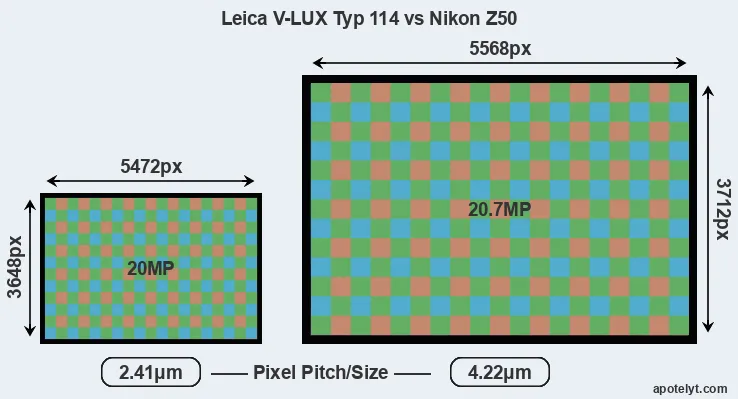 | Sensor Specs | Leica V-LUX Typ 114 | Nikon Z50 |