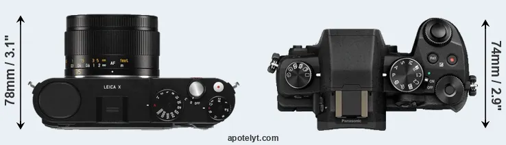 If the front view area (width x height) of the cameras is taken as an aggregate measure of their size, the Panasonic G85 is notably larger (17 percent) than the Leica X Typ 113. It is noteworthy in this context that the G85 is splash and dust-proof, while the X Typ 113 does not feature any corresponding weather-sealing.