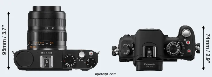 If the front view area (width x height) of the cameras is taken as an aggregate measure of their size, the Panasonic G2 is notably larger (7 percent) than the Leica X Vario. In this context, it is worth noting that neither the X Vario nor the G2 are weather-sealed.