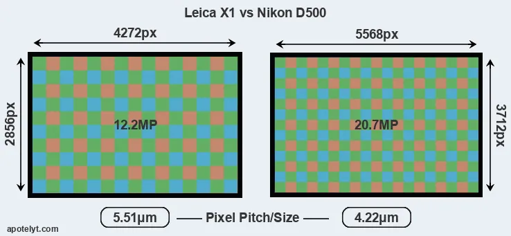 | Sensor Specs | Leica X1 | Nikon D500 |