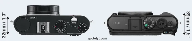 If the front view area (width x height) of the cameras is taken as an aggregate measure of their size, the Olympus E-PL10 is notably larger (7 percent) than the Leica X1. In this context, it is worth noting that neither the X1 nor the E-PL10 are weather-sealed.