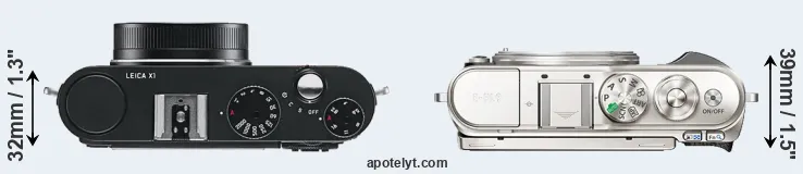 If the front view area (width x height) of the cameras is taken as an aggregate measure of their size, the Olympus E-PL9 is notably larger (7 percent) than the Leica X1. In this context, it is worth noting that neither the X1 nor the E-PL9 are weather-sealed.