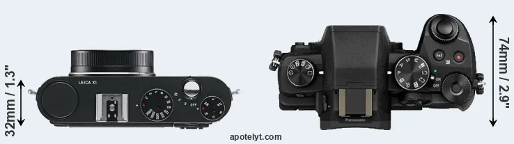 If the front view area (width x height) of the cameras is taken as an aggregate measure of their size, the Panasonic G85 is considerably larger (53 percent) than the Leica X1. It is noteworthy in this context that the G85 is splash and dust-proof, while the X1 does not feature any corresponding weather-sealing.