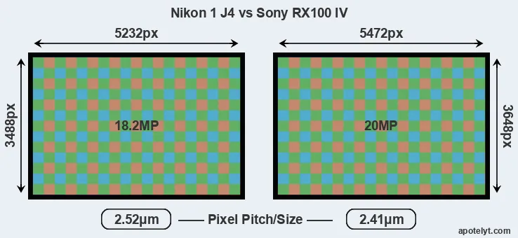 | Sensor Specs | Nikon 1 J4 | Sony RX100 IV |