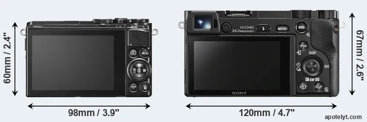 | Body Specs | Nikon 1 J5 | Sony A6000 |