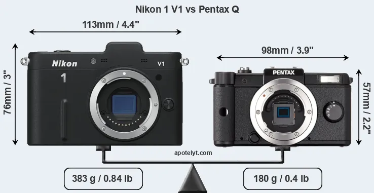 Size Nikon 1 V1 vs Pentax Q