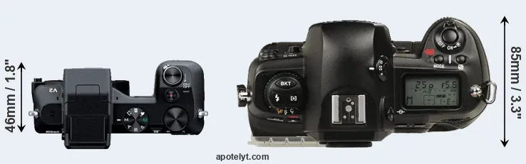 | 9. | Nikon D2Xs | 158 mm | 150 mm | 86 mm | 1252 g | 3800 | Y | Jun 2006 | US$ 4 699 | ebay.com | |