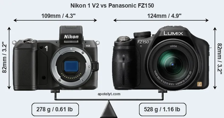 The above size and weight comparisons are to some extent incomplete and possibly misleading, as the FZ150 has a lens built in, whereas the V2 is an interchangeable lens camera that requires a separate lens. Attaching the latter will add extra weight and bulk to the setup.