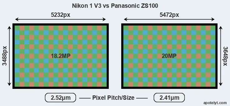 | Sensor Specs | Nikon 1 V3 | Panasonic ZS100 |