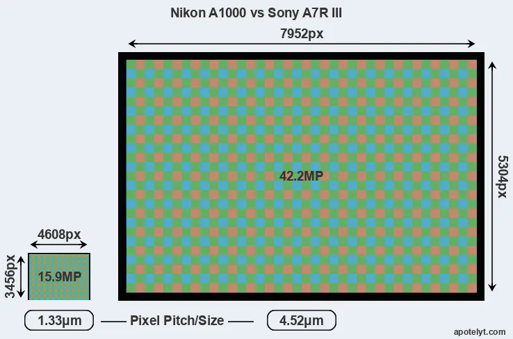 | Sensor Specs | Nikon A1000 | Sony A7R III |