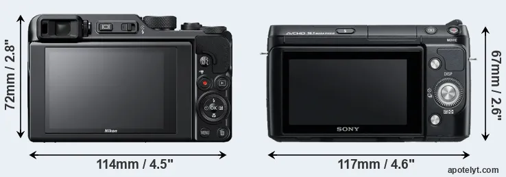 | Screen Specs | Nikon A1000 | Sony NEX-F3 |