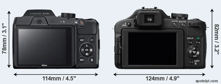 | Body Specs | Nikon B500 | Panasonic FZ150 |