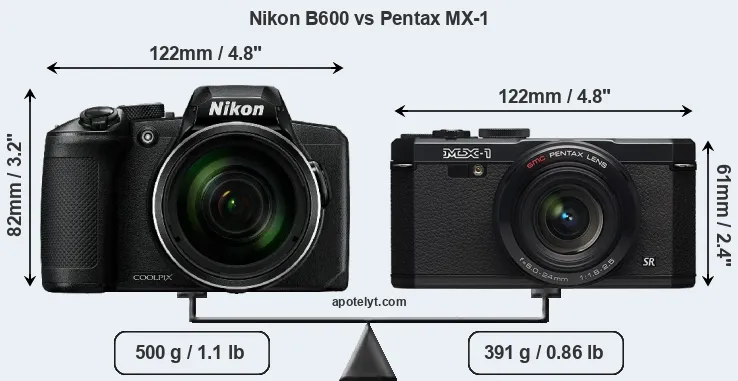 | Body Specs | Nikon B600 | Pentax MX-1 |