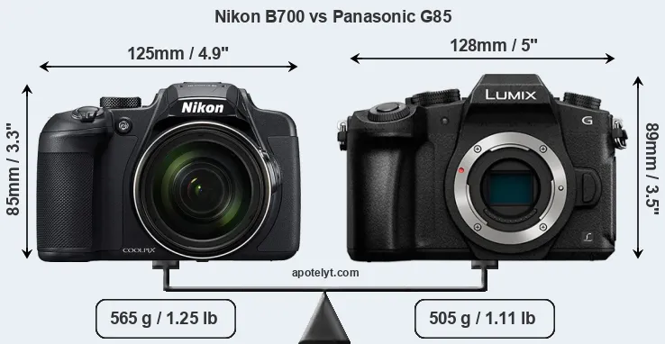 | Camera Model | Nikon B700 | Panasonic G85 |