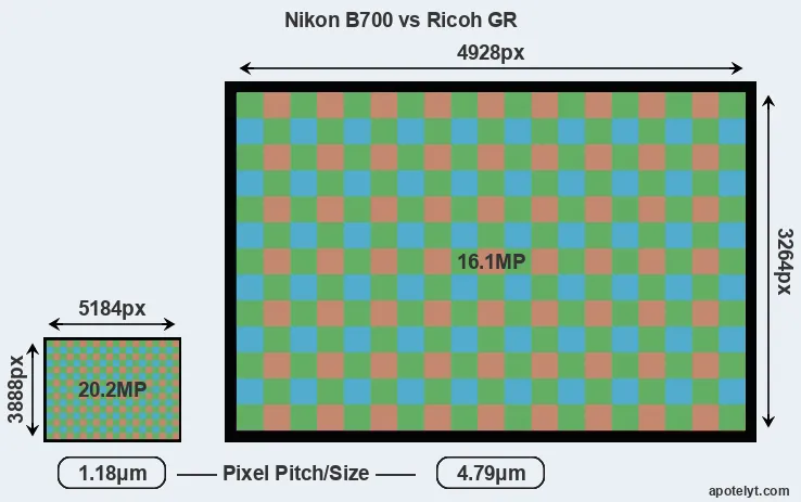 | Sensor Specs | Nikon B700 | Ricoh GR |