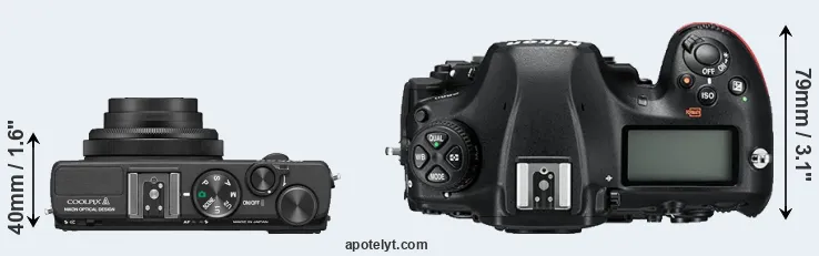 The above size and weight comparisons are to some extent incomplete and possibly misleading, as the Coolpix A has a lens built in, whereas the D850 is an interchangeable lens camera that requires a separate lens. Attaching the latter will add extra weight and bulk to the setup. You can compare the optics available for the D850 and their specifications in the Nikon Lens Catalog.