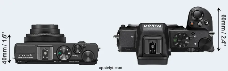 The above size and weight comparisons are to some extent incomplete and possibly misleading, as the Coolpix A has a lens built in, whereas the Z50 is an interchangeable lens camera that requires a separate lens. Attaching the latter will add extra weight and bulk to the setup.