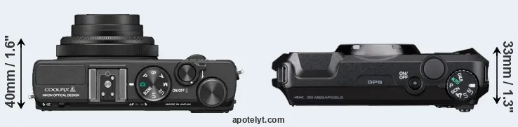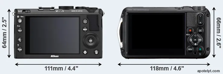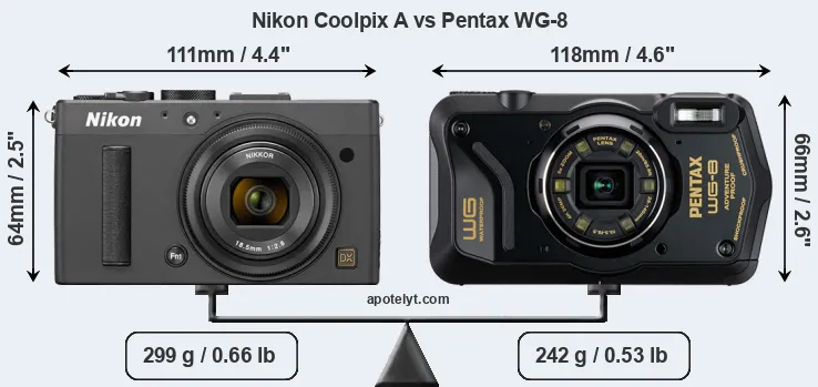Size Nikon Coolpix A vs Pentax WG-8