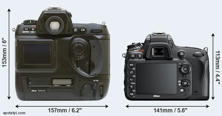 | 4. | Nikon D1H | 157 mm | 153 mm | 85 mm | 1100 g | 1200 | Y | Feb 2001 | US$ 4 499 | ebay.com | |