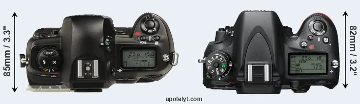 | 8. | Nikon D2Xs | 158 mm | 150 mm | 86 mm | 1252 g | 3800 | Y | Jun 2006 | US$ 4 699 | ebay.com | |