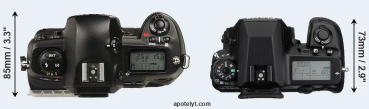 | 7. | Nikon D2Xs | 158 mm | 150 mm | 86 mm | 1252 g | 3800 | Y | Jun 2006 | US$ 4 699 | ebay.com | |