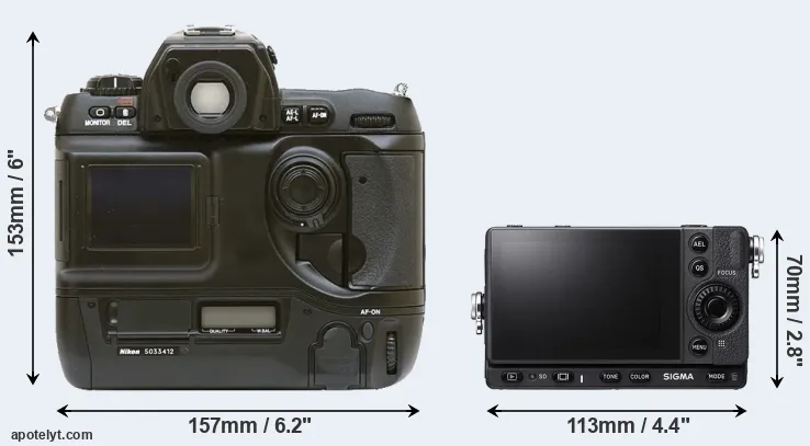 | 5. | Nikon D1X | 157 mm | 153 mm | 85 mm | 1100 g | 1200 | Y | Feb 2001 | EUR 7 999 | ebay.com | |