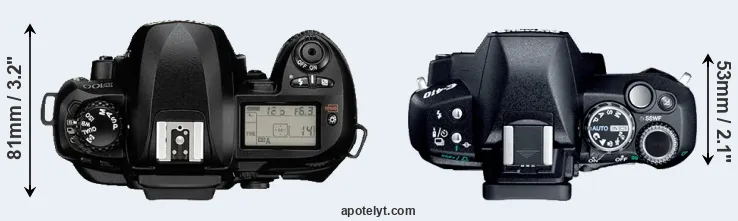 | 6. | Nikon D50 | 133 mm | 102 mm | 76 mm | 620 g | 400 | n | Apr 2005 | US$ 749 | ebay.com | |