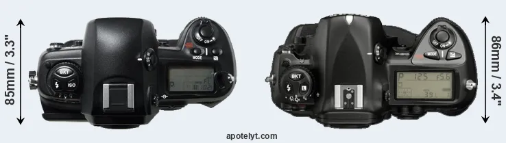 | 6. | Nikon D2Xs | 158 mm | 150 mm | 86 mm | 1252 g | 3800 | Y | Jun 2006 | US$ 4 699 | ebay.com | |