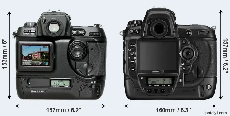 | 4. | Nikon D1 | 157 mm | 153 mm | 85 mm | 1100 g | .. | Y | Jun 1999 | US$ 5 499 | ebay.com | |