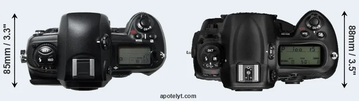 | 8. | Nikon D2Xs | 158 mm | 150 mm | 86 mm | 1252 g | 3800 | Y | Jun 2006 | US$ 4 699 | ebay.com | |
