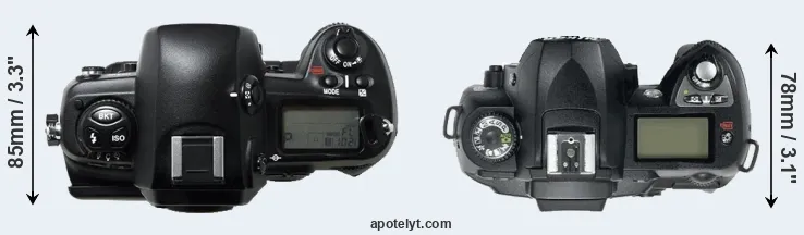 | 8. | Nikon D2Xs | 158 mm | 150 mm | 86 mm | 1252 g | 3800 | Y | Jun 2006 | US$ 4 699 | ebay.com | |