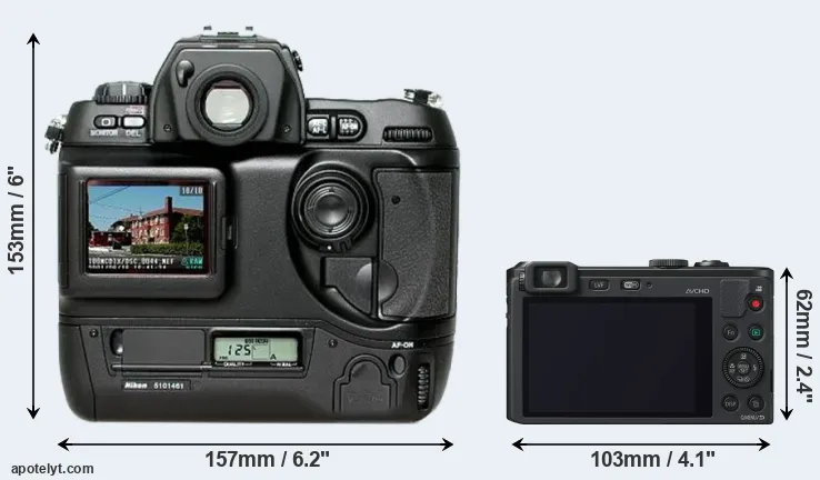 | 5. | Nikon D1 | 157 mm | 153 mm | 85 mm | 1100 g | .. | Y | Jun 1999 | US$ 5 499 | ebay.com | |