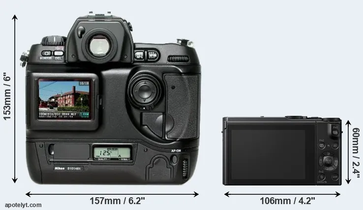 | 5. | Nikon D1 | 157 mm | 153 mm | 85 mm | 1100 g | .. | Y | Jun 1999 | US$ 5 499 | ebay.com | |