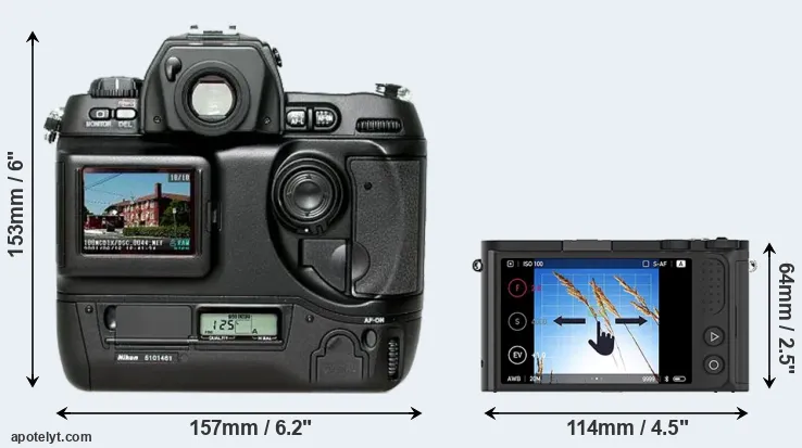 | 6. | Nikon D1 | 157 mm | 153 mm | 85 mm | 1100 g | .. | Y | Jun 1999 | US$ 5 499 | ebay.com | |