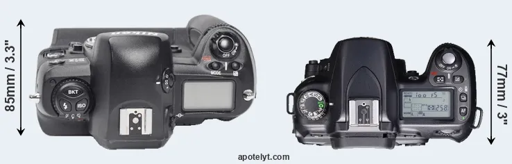 | 7. | Nikon D2Xs | 158 mm | 150 mm | 86 mm | 1252 g | 3800 | Y | Jun 2006 | US$ 4 699 | ebay.com | |