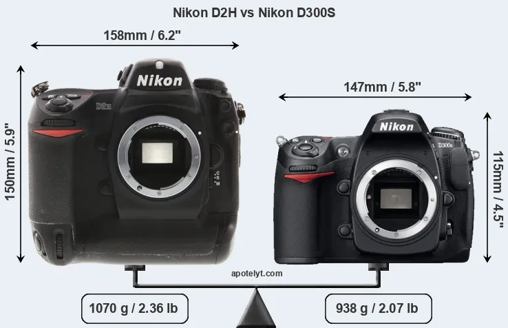 Size Nikon D2H vs Nikon D300S