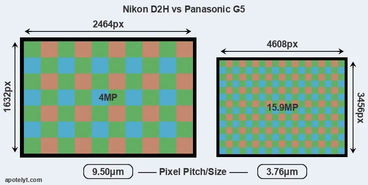 | Sensor Specs | Nikon D2H | Panasonic G5 |