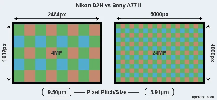 | Sensor Specs | Nikon D2H | Sony A77 II |