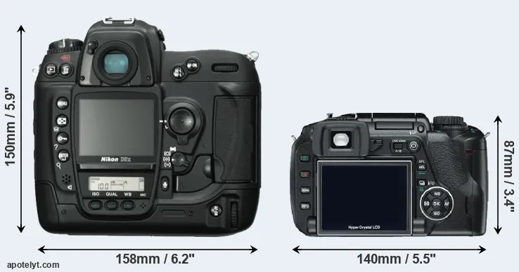 | 5. | Nikon D1 | 157 mm | 153 mm | 85 mm | 1100 g | .. | Y | Jun 1999 | US$ 5 499 | ebay.com | |