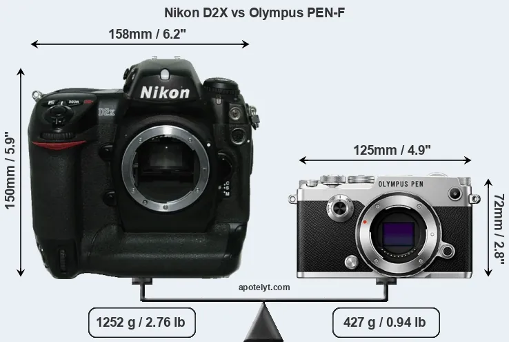 Size Nikon D2X vs Olympus PEN-F