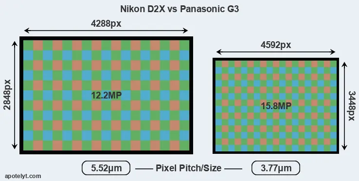 | Sensor Specs | Nikon D2X | Panasonic G3 |