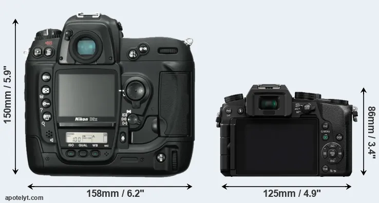 | Body Specs | Nikon D2X | Panasonic G7 |