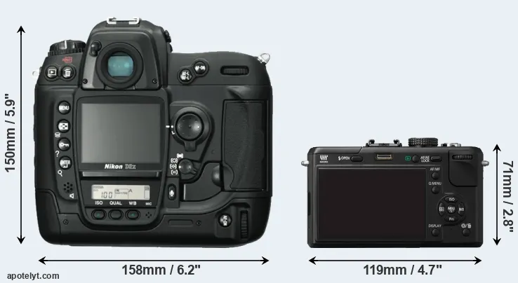 | Body Specs | Nikon D2X | Panasonic GF1 |