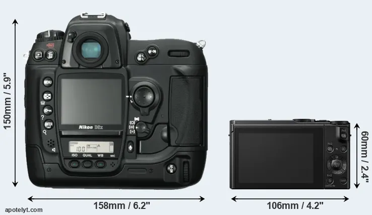 | Body Specs | Nikon D2X | Panasonic LX10 |