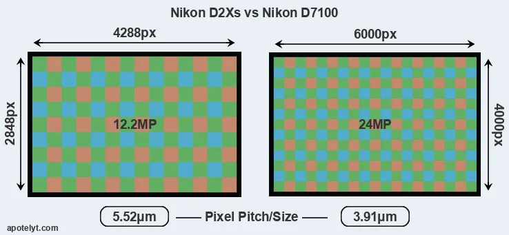 | Sensor Specs | Nikon D2Xs | Nikon D7100 |