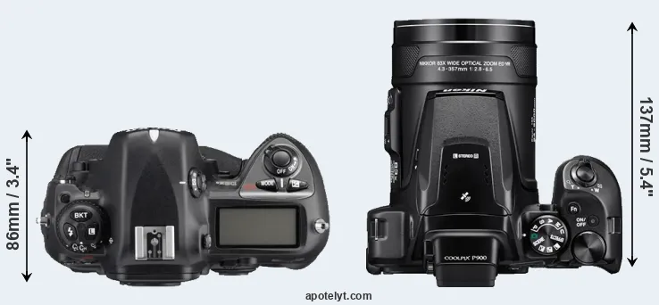 | Body Specs | Nikon D2Xs | Nikon P900 |