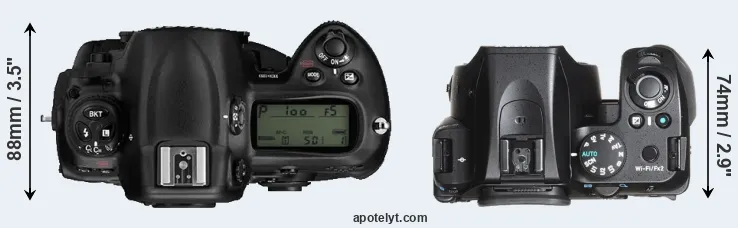 | 5. | Nikon D2Xs | 158 mm | 150 mm | 86 mm | 1252 g | 3800 | Y | Jun 2006 | US$ 4 699 | ebay.com | |