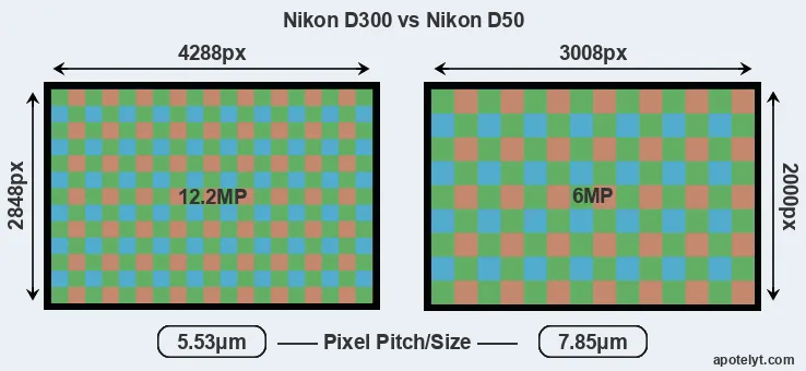 | Sensor Specs | Nikon D300 | Nikon D50 |