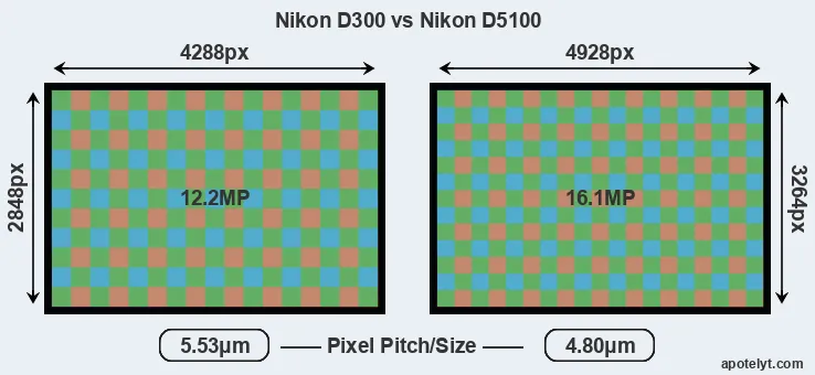 | Sensor Specs | Nikon D300 | Nikon D5100 |