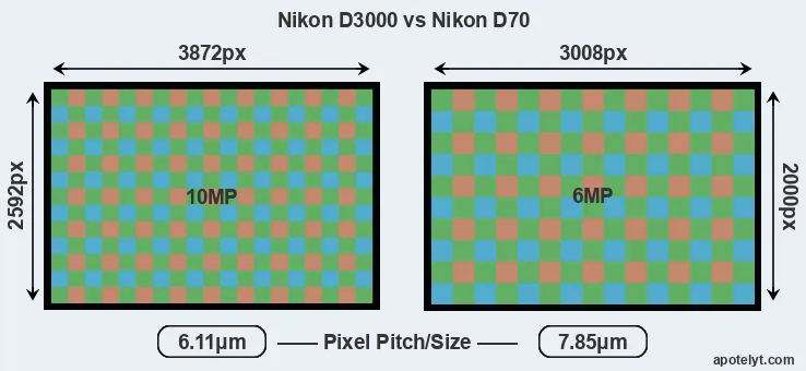 | Sensor Specs | Nikon D3000 | Nikon D70 |